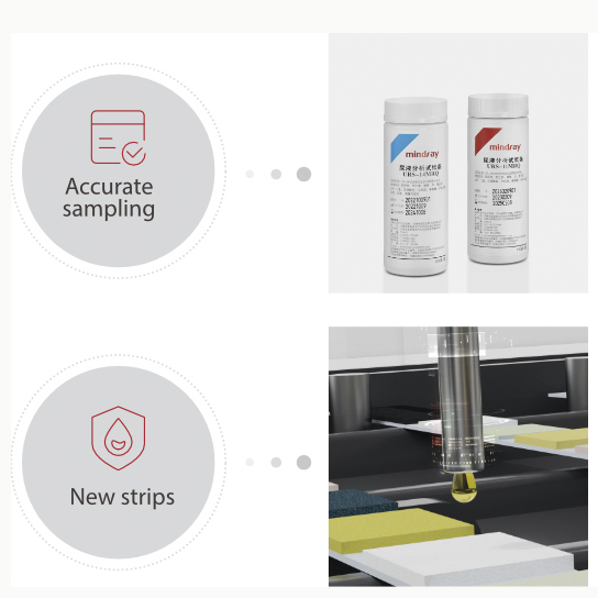 - Определяемые биохимические параметры: сухая химия - GLU, PRO, BLD, BIL, pH, KET, VitC, URO, NIT, LEU, S.G., MCA, CRE, CA; физические - S.G., Turb, Color;